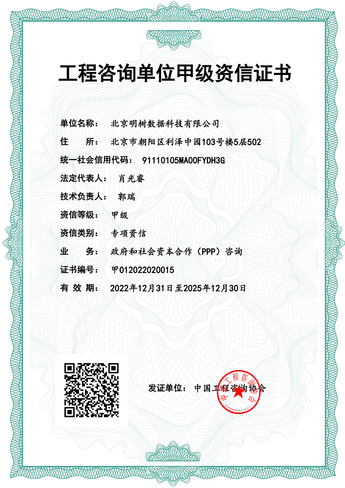 工程咨詢單位甲級資信證書